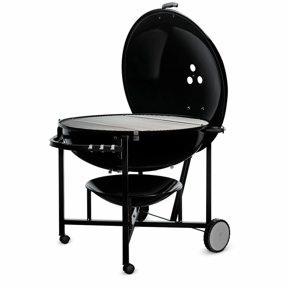 - Hinged cooking grate makes it easy to add charcoal while the grill is in use