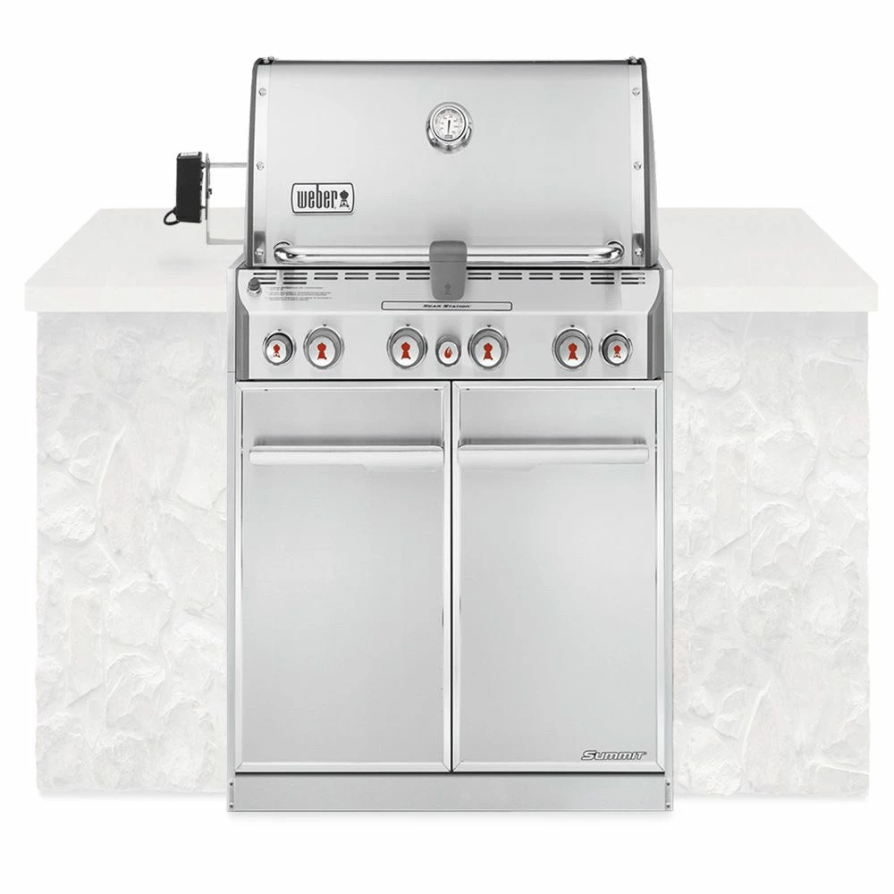 Weber Summit 4-Burner Built-In Gas Grill with Rotisserie, Sear Station and Access Doors (WEB-S-460) provides a seriously impressive experience, offering features like an integrated rotisserie system, a smoker box with dedicated smoking burner and a high heat zone for searing meat. It also offers an exceptionally large cooking area, warming rack and 9mm stainless steel grates to give you more space to work your magic. All Weber Summit Series propane grills feature an LED fuel gauge to let you check your propane supply at a glance as well. Whether you’re looking to slow roast a whole chicken with the rotisserie, grill up a perfectly medium rare steak on the high heat sear zone or use the integrated smoker box to infuse some racks of ribs with delicious smoky flavor, the Weber Summit Series has what you need.
